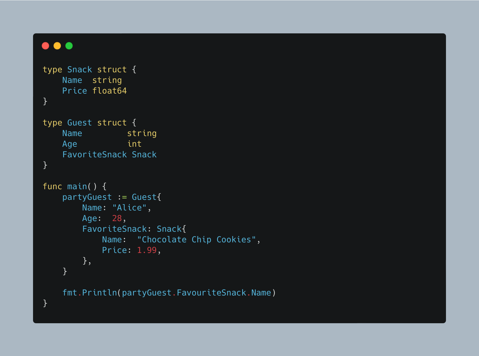 struct, we can easily associate each guest with their favorite snack and access this information in a structured manner.